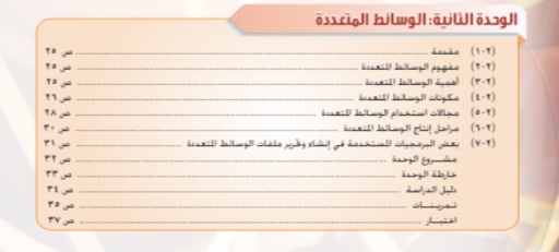 تتحدث الوحدة الثانية عن الوسائط المتعددة ومفهومها ومجالات استخدامها